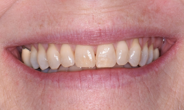 Kathleen came to us concerned about the wear and staining on her front teeth from years of grinding and old fillings chipping. She wanted to makeover her smile and we did just that! With a combination of conservative veneers and crowns, Kathleen is thrilled with the result!