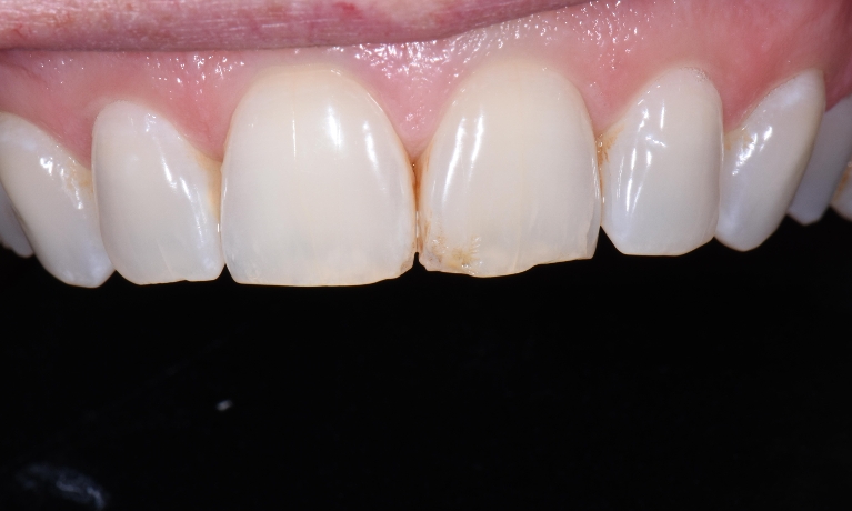 Try not to use your teeth to open things! Chips and fractures can happen! Luckily, we LOVE working on front teeth. This left front tooth was repaired in less than 30 minutes with a conservative composite restoration.